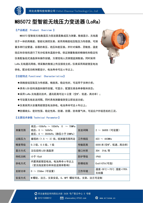 M85072無線壓力變送器(LoRa)